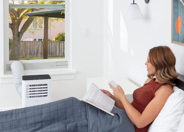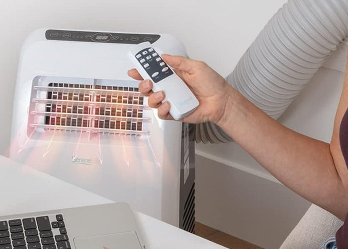 The SereneLife Portable Air Conditioner System features a lightweight, sleek design for use in various spaces at home or the office. Includes rolling wheels for easy mobility. Constructed with engineered ABS Housing.