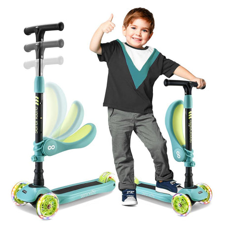 3-Wheel Kids Scooter, Sit/Stand, LED Wheels, Adjustable Height, Tiger